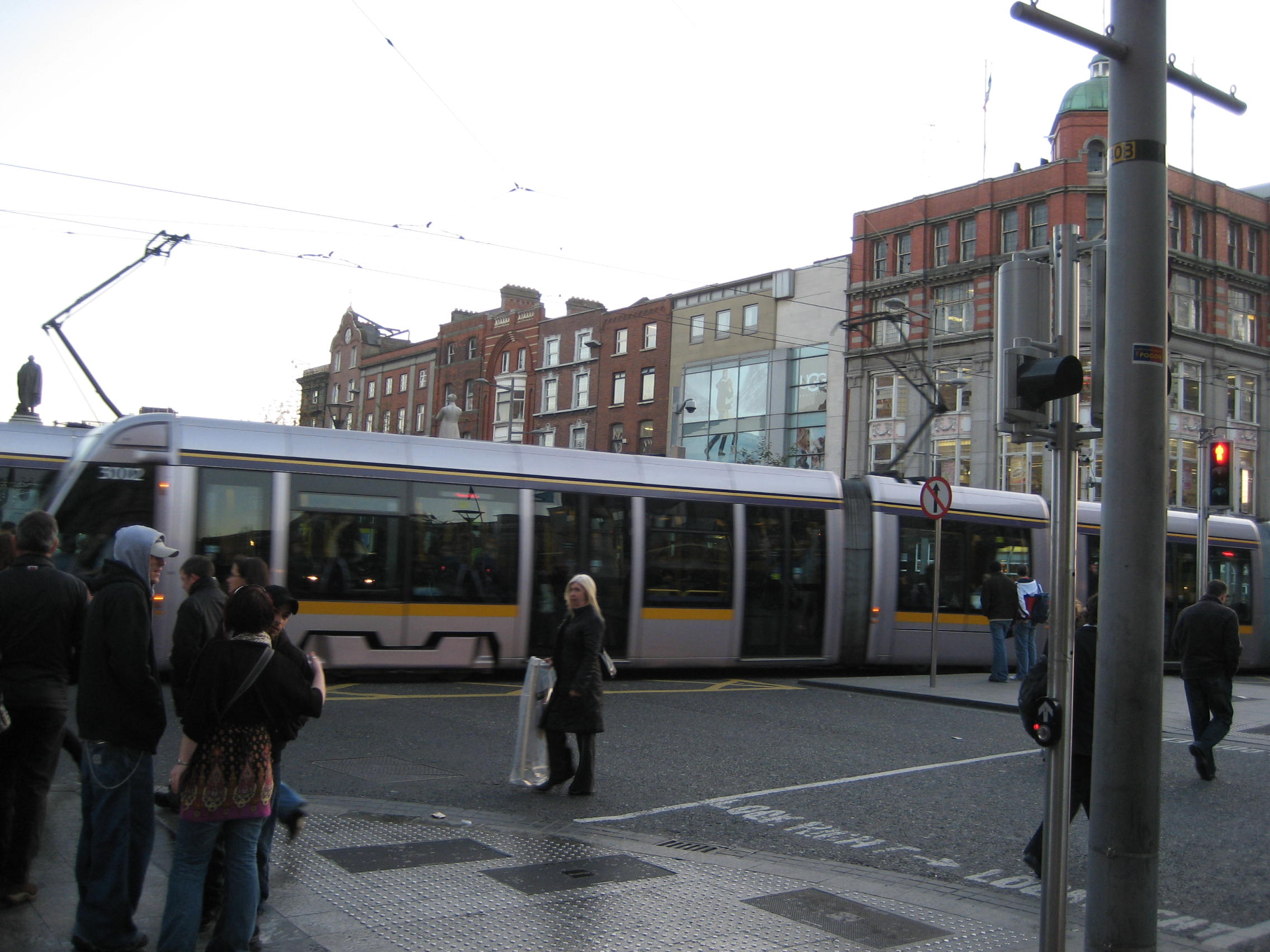 The DART suburban railway along the coast was the first innovation, standing for Dublin Area Rapid Transit. This has been joined by the Red and Green lines of the LUAS, the Dublin tram system that connects suburbs up with the centre, using stylish French built trams. Both lines are around 20 km long with stations every kilometre, 67 in all, with services every few minutes and easy boarding from low platforms. On either side of the City both lines stretch out through the suburbs and low density industrial estates to new suburbs in green fields. The Red line extends out through the International Financial District of Custom House Quay, with its concentration of world and on to the Point, in a quarter that looks more like Hamburg’s Hafen City than anywhere in the British Isles. This is now crossed in the centre by the Green Line, which goes out to the prosperous Southern countryside, having taken over an old railway line for much of the route. Both are so busy that the units are being extended to 50 metres.