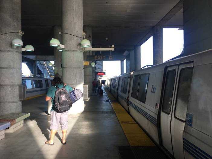 In the centre of San Francisco, clustered around the magnificent Salesforce Park stand the towers of the companies that have survived the dot.com boom. The names of familiar people-facing computer ‘apps’ such as Twitter or Survey Monkey are located where young staff can walk, bike or scoot to work. The park occupies the roof of the new transit terminal, which had only opened a couple of months before our visit and is accessed by escalators or on a gondola or cable car. But many more staff seem to get into cars in their spacious garages and drive to car parks under their offices without ever encountering the realities of urban life. There are only a few suburban passenger railway lines such as the Caltrain, which we used to get to San Francisco Airport from Palo Alto before changing to BART. The BART train may look modern but is poorly signed with complex ticket machines and does not offer a better alternative to the car or Uber taxi for most people.