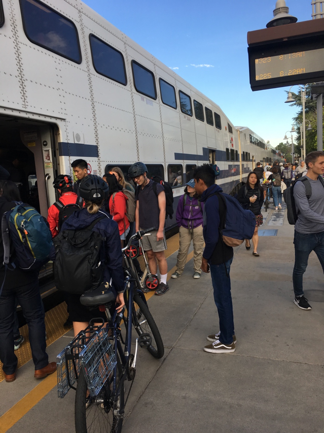 Congestion is a consequently a major challenge throughout the Bay Area. Four-lane freeways and flyovers are jammed with traffic crawling along. Even if the cars are much smaller than they were fifty years ago, and often electric, the environmental and health costs are huge. Autonomous or self-driving cars would make little difference. Interestingly where people once lived in Palo Alto’s spacious suburbs and worked in San Francisco, the dominant movement is now the other way. Even more travel across the Golden Gate and Bay Bridges going North and East. While new apps for telephones should make ride sharing much easier, and priority is given on some freeways to people sharing a car, so long as parking is easy people with money will prefer to use their cars (or ride electric bikes for more local trips).