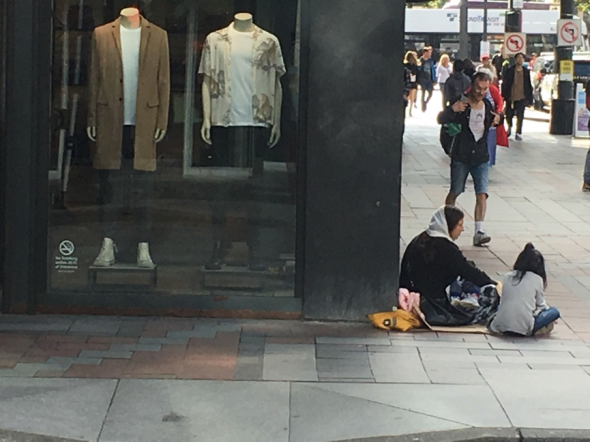Generally, we saw few examples of building affordable or ordinary housing, despite large areas of under-used land alongside railway and rapid transit lines. Vancouver was exceptional with its high rise suburbs along the routes and even at the end of a rural branch line. The old railway yards at Yaletown in the city centre have been regenerated as a thriving mixed use area. Something similar has been tried in Gastown, by restoring the old street surfaces and adapting old industrial buildings to new uses. However, we were surprised to come across a whole street of apparent outcasts while walking away from the riverside towards Chinatown.